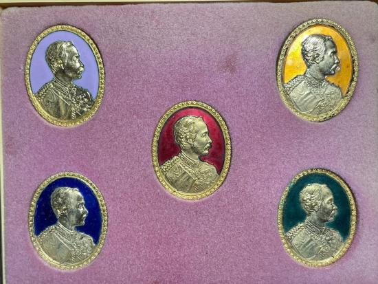 200.- ems เหรียญเสด็จพ่อ ร.๕ วัดสุทัศน์ (พิธีใหญ่ เสกในพระอุโบสถ 3 วัน 3 คืน) กะไหล่ทองลงยา กรรมการ 1 ใน 1555 ชุด (5 สี-5 เหรียญ) สมโภชน์พระอาราม 200 ปี ตอกโค๊ด สวยเดิมๆ กล่องเดิมจากวัด |