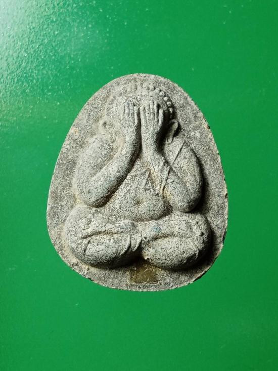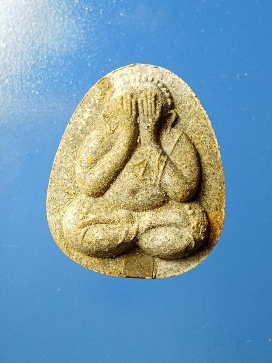 พระปิดตาหลังยันต์ดวง เนื้อ2สี เนื้อเกสรและเนื้อใบลาน มีคล้ายคราบน้ำมนต์ทั่วองค์พระ(16) |