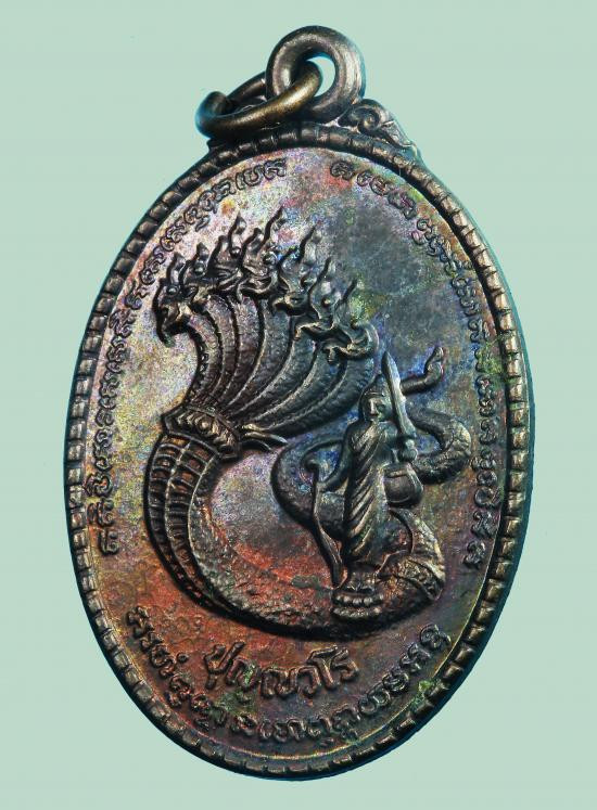 เหรียญพระพุทธนิรโรคันตราย - ท้าวหิรัญพนาสูร ที่ระลึก 120 ปี พระบรมราชสมภพ รัชกาลที่ 6 เนื้อทองแดง โรงพยาบาลพระมงกุฎเกล้า สร้างปี 2544 |