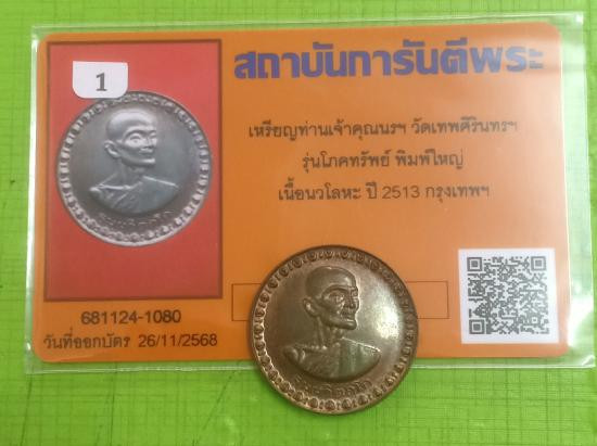 เหรียญโภคทรัพย์ ท่านเจ้าคุณนรฯ วัดเทพศิรินทร์ ( บล็อกนิยมตา 2 ชั้น ) พิมพ์เล็ก เนื้อนวโลหะ ปี 2513 สวยเดิม มาพร้อมบัตรรับรองครับ |