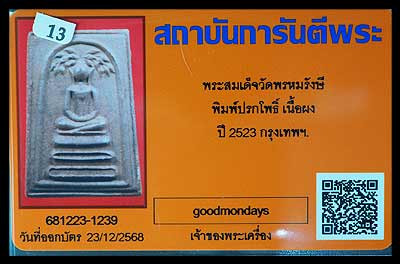 ^_^วัดใจ 100-.^_^พระชัยวัฒน์ วัดสุทัศน์ รุ่นขุมทรัพย์ ปี2537 (พิธีวันเพ็ญกลางเดือนสิบสอง) เนื้อนวะโลหะ พร้อมกล่องเดิม+โค๊ต+จาร สวยๆ ครับ |