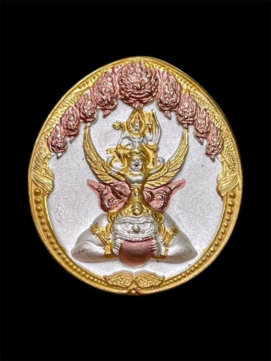 พญาครุฑ รุ่นอกแอ่นหลัง ว. มีบุญ มีวาสนา หลวงพ่อวราห์ วัดโพธิทอง เนื้อกะไหล่ทอง ปี 2541 สภาพสวยเดิม กล่องเดิม |