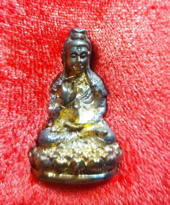 ล็อกเก็ตเจ้าแม่กวนอิมยืน ตัวเรือนชุบทองฝังเพชร สวยเดิม |