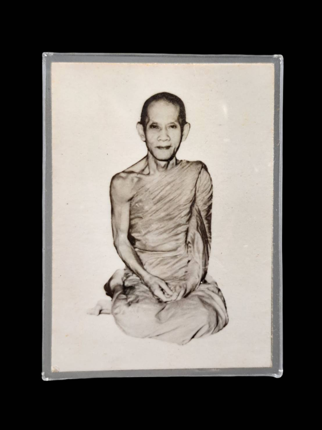รูปถ่ายหลวงปู่วิเวียร วัดดวงแข อัดกระจก จารยันต์พุทธซ้อนด้วยปากกาหมึก |