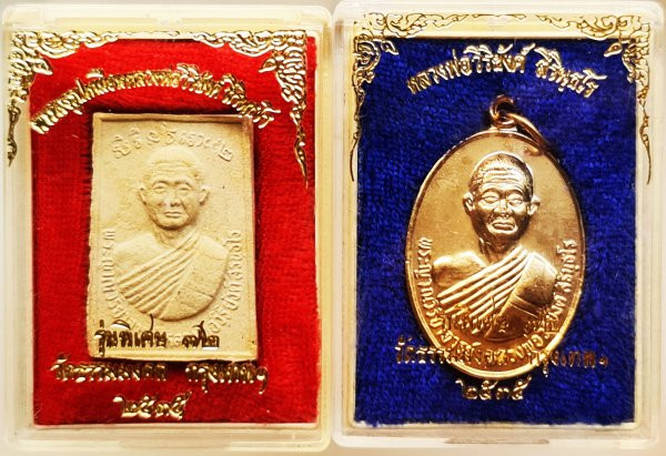 << วัดใจ >> พระผงรูปเหมือน (โรยเส้นเกศา) + เหรียญรูปไข่ หลวงพ่อวิริยังค์ สิรินธโร วัดธรรมมงคล รุ่นพิเศษ 72 ปี2535 สภาพสวยพร้อมกล่องเดิม ๆ |