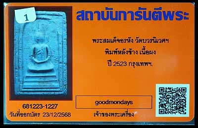 สมเด็จอรหังหลังช้าง ปี2523 วัดบวรนิเวศวิหาร กทม ลป.ดูลย์ ,ลป.โต๊ะ ร้วมปลุกเสก |