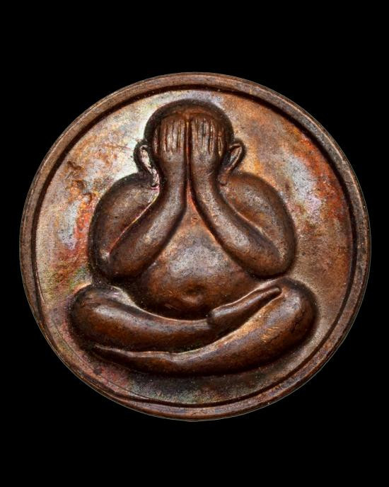 เหรียญพระปิดตา หลวงปู่โต๊ะ วัดประดู่ฉิมพลี พิมพ์เล็กหลังเรียบเนื้อทองแดง ปี 2523 กรุงเทพฯ (โค้ดนะใหญ่ตื้น)มาพร้อมบัตรรับรอง |