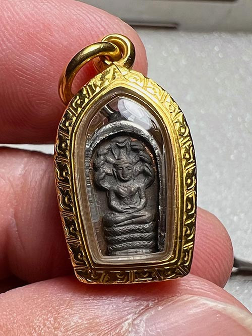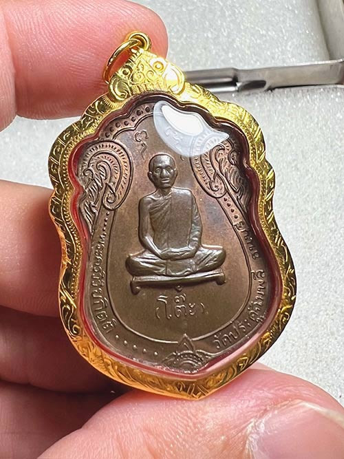 หลวงปู่โต๊ะ วัดประดู่ฉิมพลี พิมพ์กลีบบัวใหญ่ เนื้อผงเกสร ปี2521 เลี่ยมทองพร้อมบัตร |