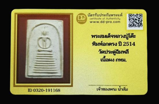พระสมเด็จหลวงปู่โต๊ะ พิมพ์อกตรงปี 2514 เนื้อผง วัดประดู่ฉิมพลี (พร้อมบัตรรับรองครับ) |