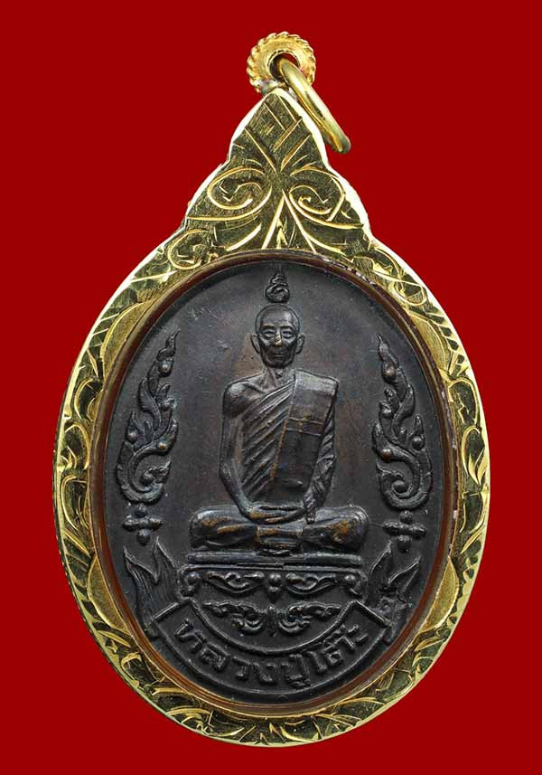 เหรียญหลวงปู่โต๊ะ พระธาตุสบฝาง เนื้อทองแดง ปี22 เลี่ยมทองพร้อมแขวนครับ |