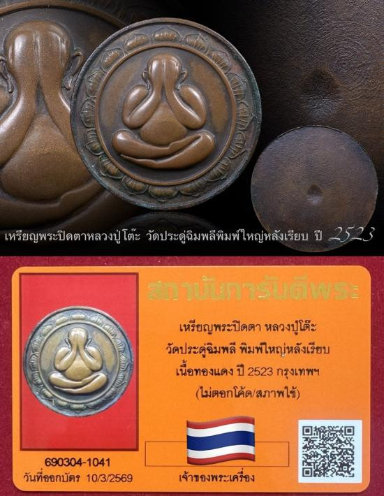 พระปิดตาจัมโบ้2 เนื้อผงใบลาน หลวงปู่โต๊ะ วัดประดู่ฉิมพลี ปี 2521 สวยครับพร้อมบัตรรับรองเวปGครับ |