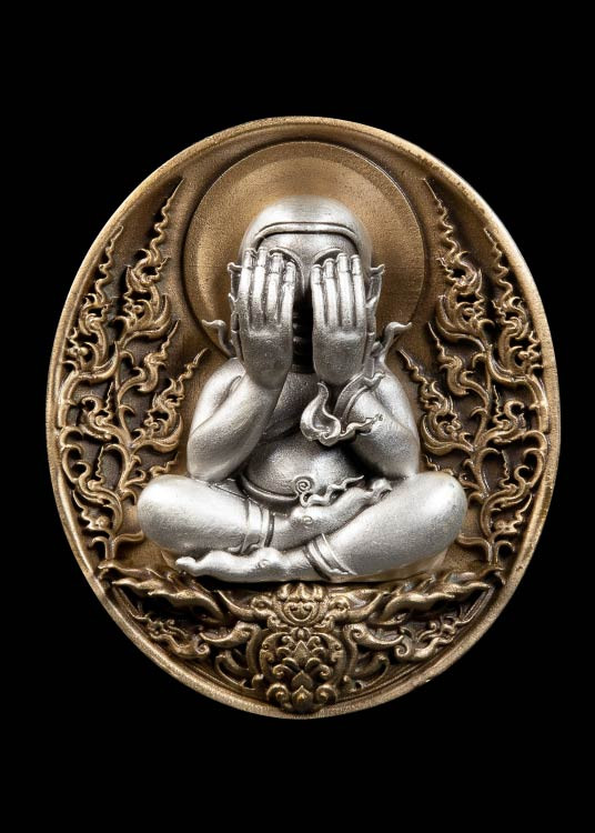 เคาะเดียวแดง พระปิดตาอภิมหาเศรษฐี เหรียญเนื้อบรอนซ์ องค์พระเนื้อเงิน พิมพ์ใหญ่ จีดสร้างโดย เอ็ม หัตถ์เทพ ปี 2563 |