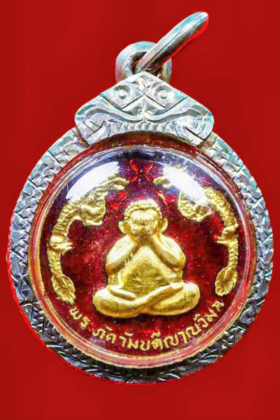 พระปิดตามังกรคู่ปี 21 วัดศาลาครืน เนื้อทองแดงกะไหล่ทองลงยาแดง เลี่ยมกรอบเงิน สวยเดิม มาพร้อมบัตรรับรอง |