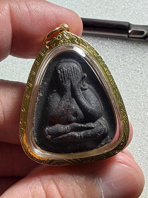 พระปิดตาหลังเต่านี้มาไหม่นิ้วมือนิ้วเท้าติดครบหลังยันติดคมพระองค์นี้หนามากขุยเติมๆดำสวย |