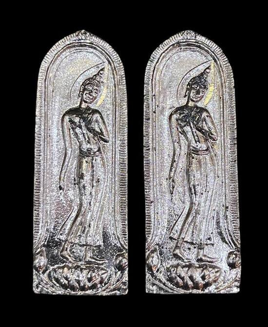 พระเชียงแสนสิงห์หนึ่ง หลังลายเซ็น เหรียญห้าเหลี่ยม จอมพล ป.พิบูลสงคราม ปี2492 เลี่ยมเก่าสวยเดิม |