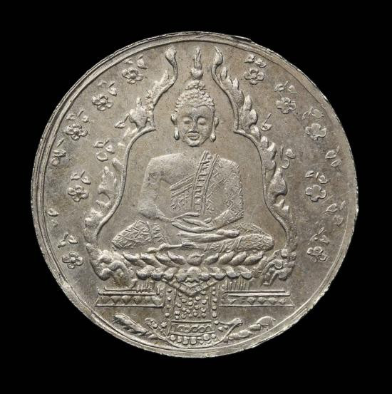 เหรียญเสมา 25 ศตวรรษ ปี2500 (เส้นพื้นเหรียญวิ่งขวางหน้า หลัง หายาก) |