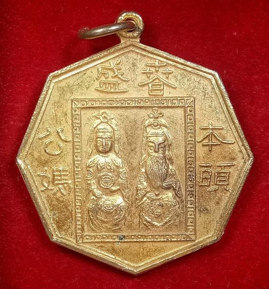 เหรียญ แปดเหลี่ยม เจ้าพ่อเจ้าแม่ชุมแสง ปี 23....กะไหล่ทอง |