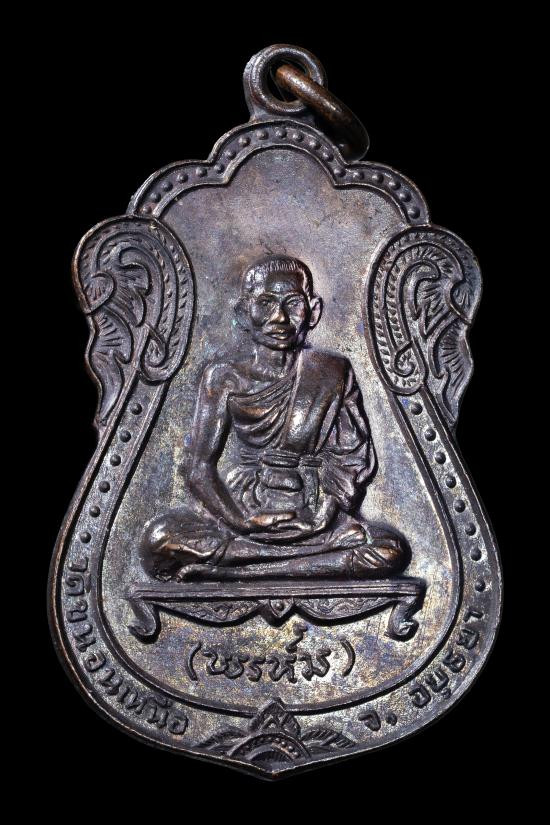 เหรียญใบมะยม ( เต็มองค์ ) หลวงพ่อเชื้อ วัดใหม่บำเพ็ญบุญ จ.ชัยนาท เนื้อทองแดงรมดำ สร้างปี 2517 |