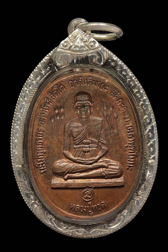 เหรียญจิ๊กโกํใหญ่ หลวงพ่อเงิน วัดดอนยายหอม เนื้ออาปาก้า ปี2511 จ.นครปฐม |