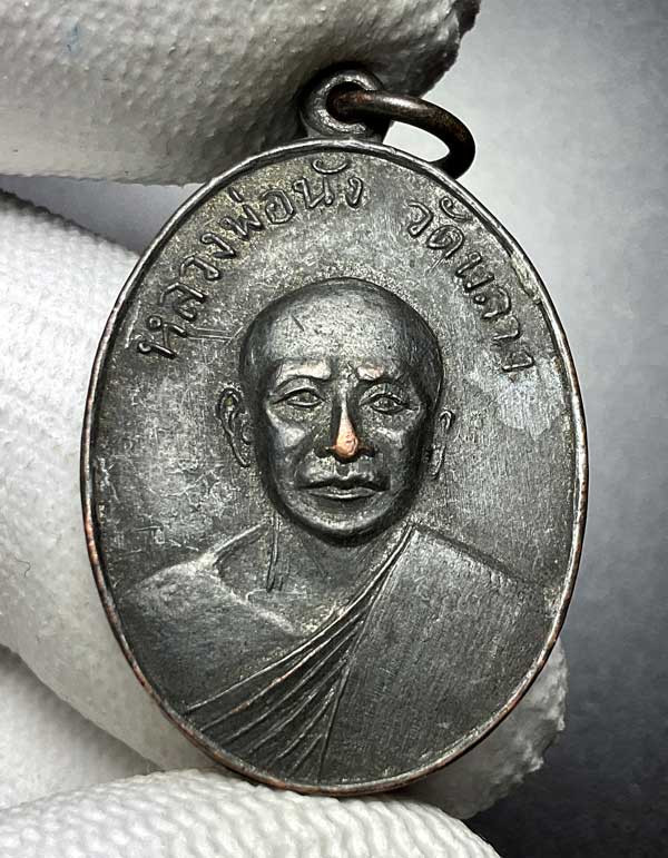 เหรียญหลวงพ่อกวย ปี15 วัดเดิมบาง เนื้อทองแดงรมดำ นิยม ไหล่จุด หูขีด |