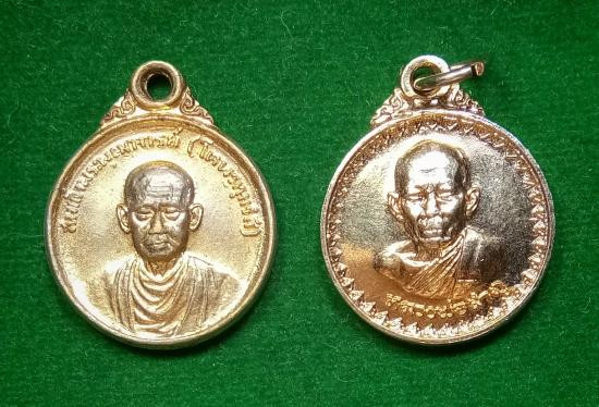 เหรียญกลมสมเด็จโต และ เหรียญกลมหลวงปู่ลำภู วัดไก่จ้น ปี 2521 กะไหล่ทอง รวม 2 เหรียญ |