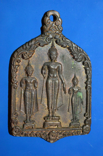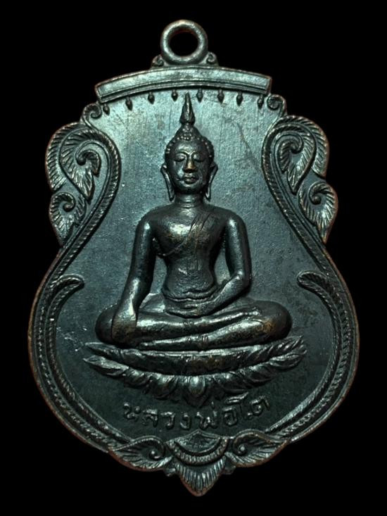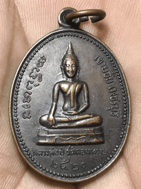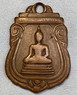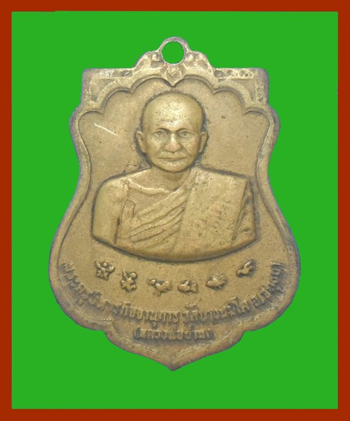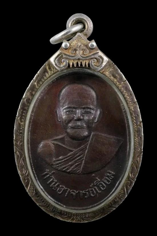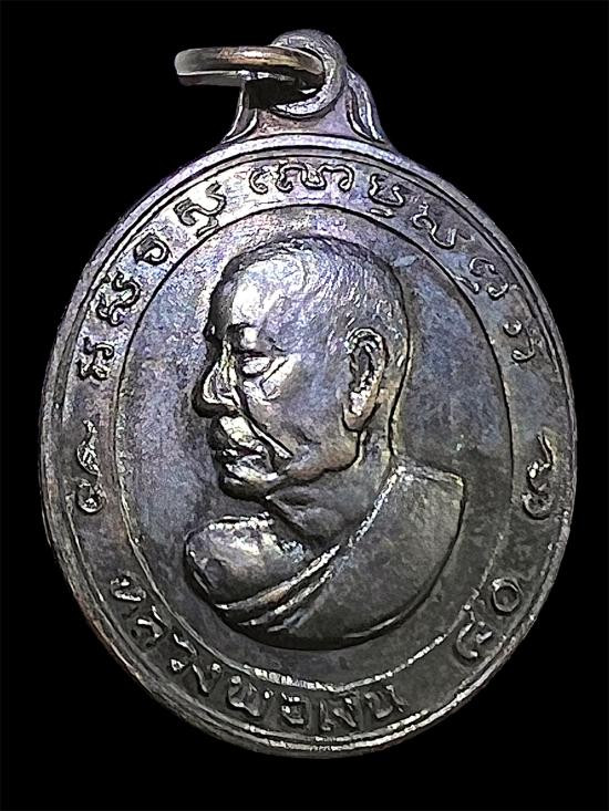 เหรียญหน้าบัน หลวงพ่อมุม วัดปราสาทเยอร์ เนื้อทองเเดงรมดำ ปี 2515 จ.ศรีสะเกษ |
