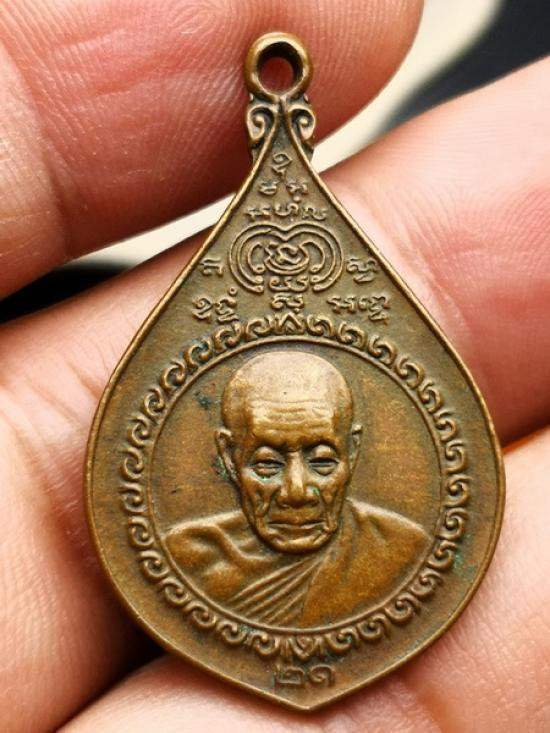 เหรียญหยดน้ำ มวก. หลวงพ่อพริ้ง วัดโบสถ์โก่งธนู ปี 2521 เนื้อทองแดง สภาพตามรูป ราคาเบาๆ |
