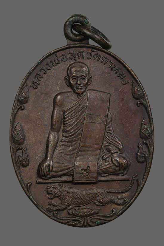 (วัดใจ) เหรียญเสือกระโจน หลวงพ่อสุด วัดกาหลง ปี 2522 เนื้อ ทองแดง กะไหล่ทอง |