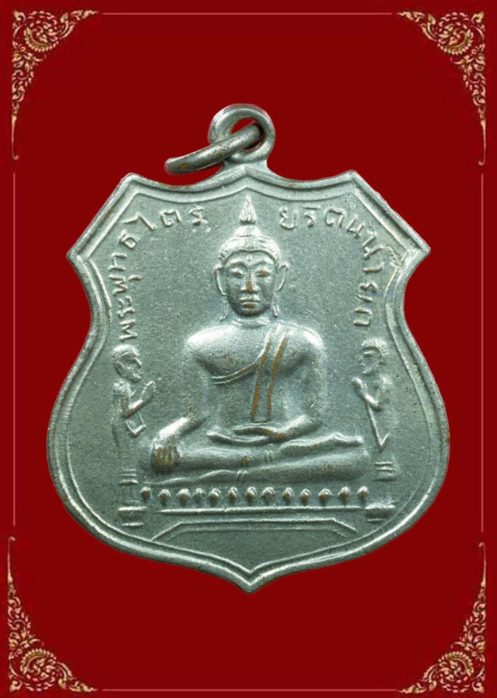 เหรียญปัญจะพุทธามหามงคล สร้างเป็นที่ระลึกครบรอบ 25 ปี ธนาคารศรีนคร เมื่อปี พ.ศ.2518 เนื้อทองแดง |