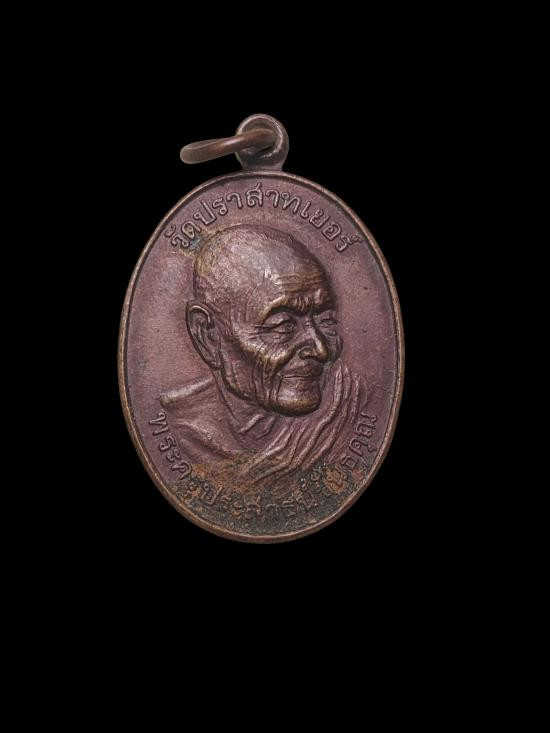 เหรียญพระครูประสาธน์ขันธคุณ วัดปราสาทเยอร์ ด้านหลังหลวงพ่อเส็ง มีจาน |