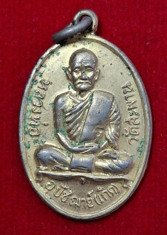 เหรียญหลวงพ่อพร วัดดอนเมือง กรุงเทพฯ รุ่นแรก เนื้อทองแดงกะไหล่ทอง ปี 2460 (สภาพใช้และเชื่อมหูใหม่) |