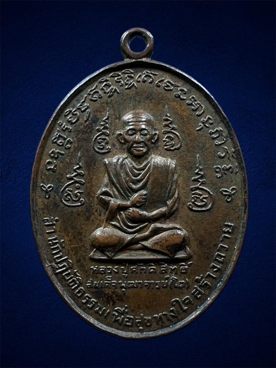 เหรียญหลวงพ่อมุ่ย วัดดอนไร่ รุ่นศาลาการเปรียญ พิมพ์รูปไข่ เนื้อทองแดง ปี 2516 จ.สุพรรณบุรี |