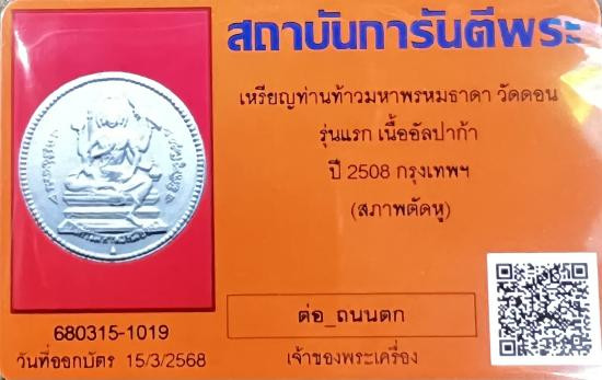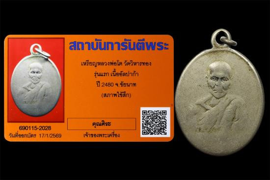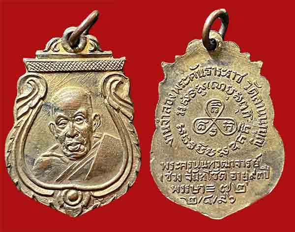เหรียญหลวงปู่กุหลาบ หลังหลวงพ่อโต วัดใหญ่สว่างอารมณ์ เนื้อเงิน ปี15 "มีจาร" พร้อมบัตรรับรอง |