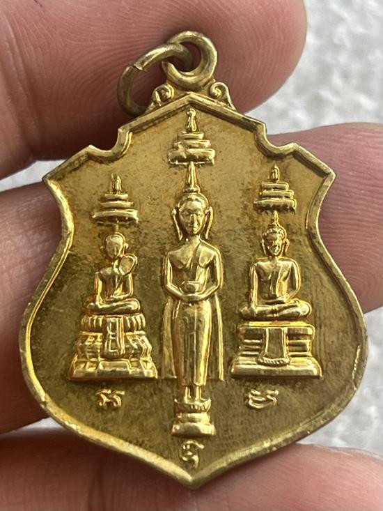 หรียญพระพุทธชินราช วัดจันทร์ประดิษฐาราม เนื้อทองแดงกะไหล่ทองปี2519 จ.กรุงเทพฯ |