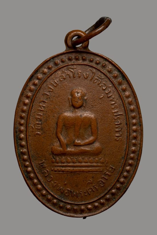 เหรียญพระศรีอาริย์ วัดไลย์ จ.ลพบุรี ปี 2467 เนื้อทองแดงกะไหล่ทอง |