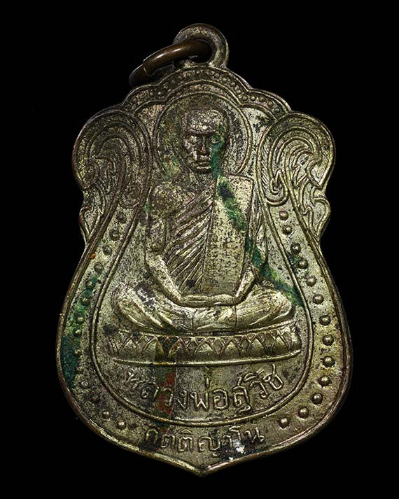 เหรียญหลวงพ่ออี๋ วัดสัตหีบ รุ่นสร้างโรงเรียน เนื้อทองแดง จ.ชลบุรี ปี พ.ศ. 2483 สภาพใชและตัดหู พร้อมเลี่ยมทอง+บัตรการันตีพระ |