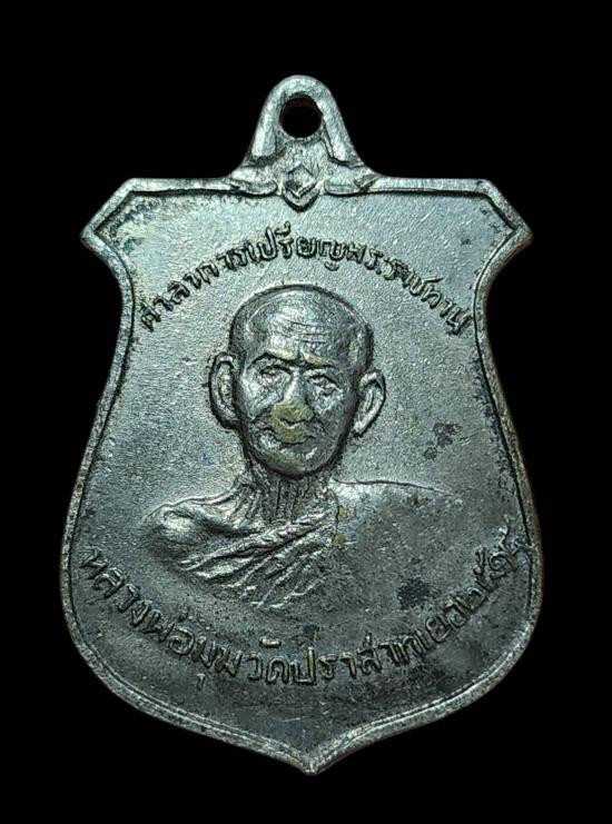 เหรียญหลวงพ่อมุม วัดปราสาทเยอร์ หน้าบันศาลาการเปรียญ ปี 2515 เนื้อทองแดงกะไหล่เงิน มีรอยจารด้านหลังเหรียญ ครับ |