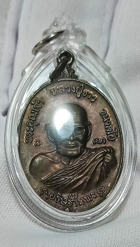 เหรียญหลวงพ่ออรรถ วัดน้ำวน จ.ปทุมธานี หลังมีจาร เลี่ยมพลาสติก |