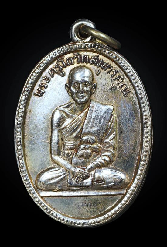 พระครูพิพัฒน์วิหารกิจ วัดบางขุนนนท์ เนื้อเงิน ปี2518 มีจารเพียบ ลป.โต๊ะ ปลุกเสก |