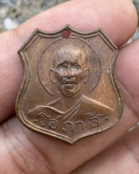 เหรียญหลวงพ่อหอม วัดชากหมาก บ้านฉาง จ.ระยอง รุ่นแรก ๒๔๙๘ บล็อกหน้าโหนก พิมพ์นิยม 4 ชาย เนื้อทองแดง |