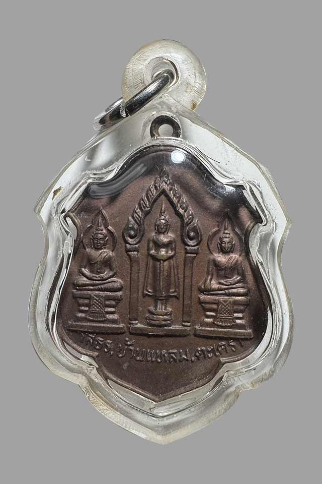 เหรียญ สามพี่น้อง หลวงพ่อโสธร วัดบ้านแหลม เขาตระเครา รุ่นถวายที่ดิน เนื้อทองแดง วัดโตนดหลวง จ เพชรบุรี ปี 21 |