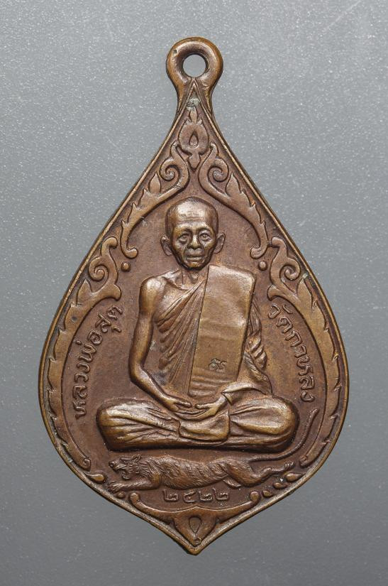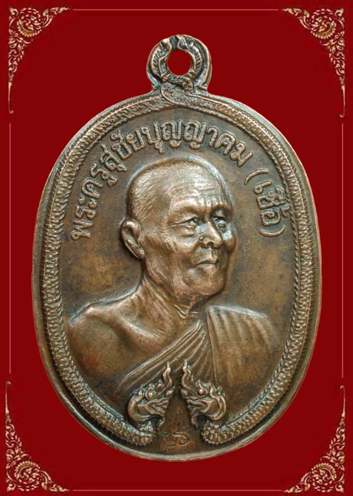 เหรียญหลวงพ่อทองศุข วัดโตนดหลวง ออกวัดมฤคทายวัน จ.เพชรบุรี พ.ศ.2498 เนื้อทองแดง |
