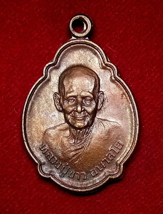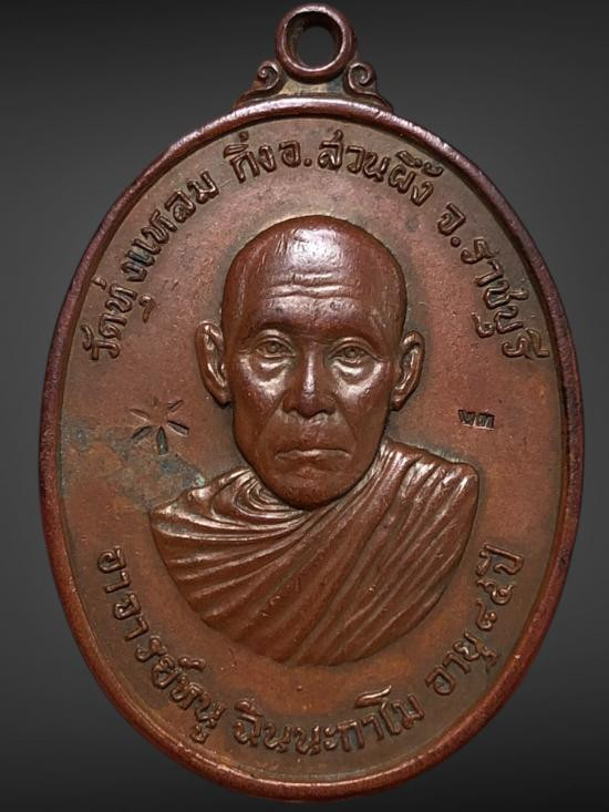 เหรียญหลวงปู่หนู วัดทุ่งแหลม จ.ราชบุรี ( รุ่นยกช่อฟ้า ) เนื้อทองแดง ปี 2523 |