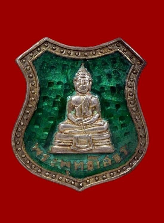 วัดใจ พระหลวงพ่อโสธร พิมพ์ 4 จุด หลังเข็มกลัด (แจกกรรมการ) ปี 2498 เนื้อเงินลงยาสีเขียว ลงยาเดิมๆ เข็มกลัดสมบูรณ์ หายากมากแล้ว มีบัตรรับรอง |