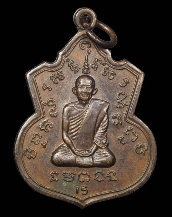 เหรียญหลวงพ่อหอม วัดชากหมาก บ้านฉาง จ.ระยอง รุ่นแรก ๒๔๙๘ บล็อกหน้าโหนก พิมพ์นิยม 4 ชาย เนื้อทองแดง |