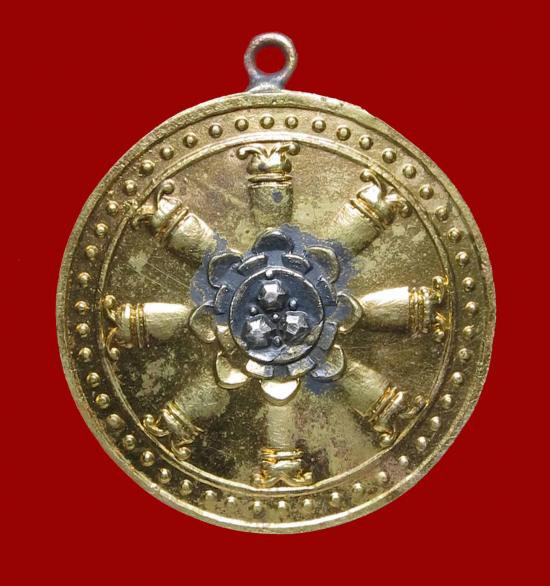 วัดใจของหายาก เหรียญธรรมจักร งานฉลอง 25 พุทธศตวรรษ เนื้อเงินกะไหล่ทอง ปี 2500 กรุเทพฯ พร้อมบัตรรับรอง |