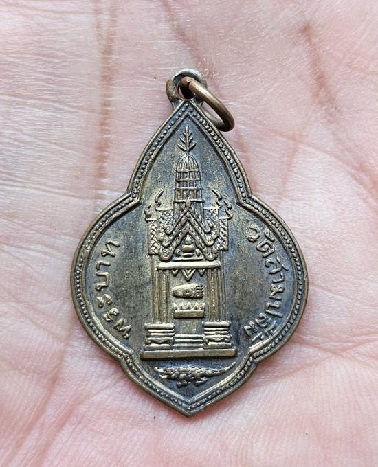 เหรียญพระพุทธชินราชหลังพานพระศรีและอกเลา ปี 2496 เนื้อกะไหล่เงิน วัดพระศรีฯ จ.พิษณุโลก |