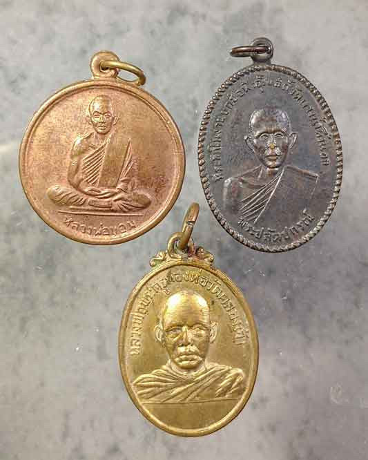 เหรียญกลม หลวงพ่อขอม วัดไผ่โรงวัว จ.สุพรรณบุรี ปี 07 +เหรียญ หลวงพ่อสายหยุด วัดบางน้ำผึ้งนอก จ.สมุทรปราการ ปี 10 +เหรียญหลวงพ่อพระครูทองหล่อ วัดคลองเจ้า รุ่นแรก ปี 15 |