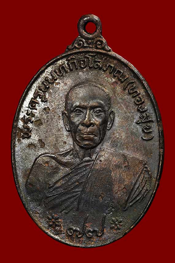 เหรียญรุ่นแรก หลวงพ่อคำ วัดหน่อพุทธางกูร เนื้อทองแดง ปี 2498 จ.สุพรรณบุรี |
