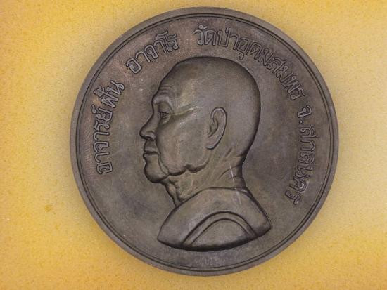 เหรียญบาตรน้ำมนต์ " อาจารย์ฝั้น อาจารโร วัดป่าอุดมสมพร " ปี 2519 เนื้อโลหะผสมตะกั่ว มหาวชิราลงกรณราชวิทยาลัยจัดสร้าง ปลุกเสกพิธีใหญ่ |